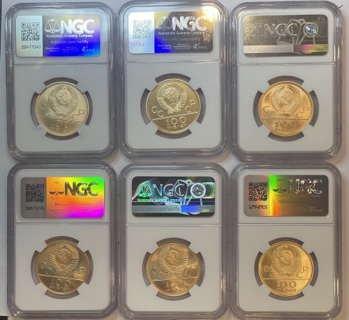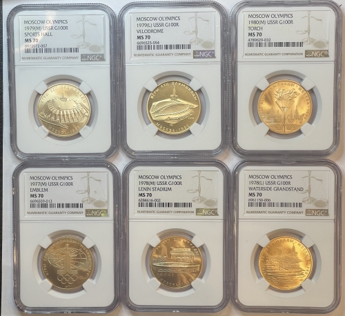 Набор золотых монет 100 рублей "Олимпиада 80" в слабах NGC MS 70