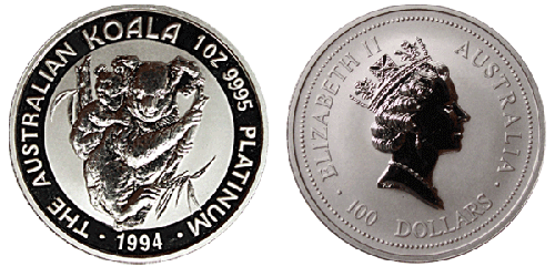 Платиновая монета 100 Dollars "Коала" Австралия 1oz РАЗНЫЕ ГОДА