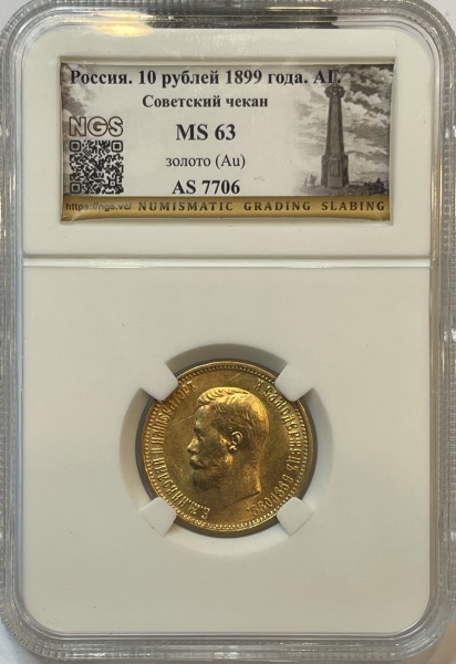 Вы всегда можете купить или продать, а также узнать текущую стоимость монеты - 'Золотая монета 10 рублей Николай II 1899г., в слабе NGS MS 63' в г.Москва (Москва). У нас Вы получите полную и необходимую консультация от квалифицированных специалистов и профессионалов, работающих на рынке инвестиций в драгметаллы уже долгое время. Мы стараемся предложить нашим клиентам лучшие цены выкупа и продажи на рынке (с минимальным спредом), а также гарантируем конфиденциальность всех проводимых сделок.