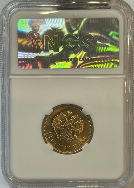 Золотая монета 10 рублей Николай II 1899г., в слабе NGS MS 63