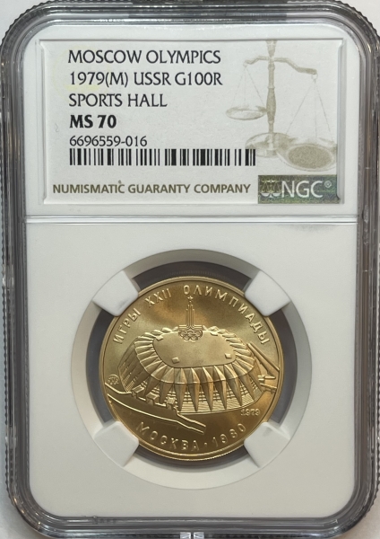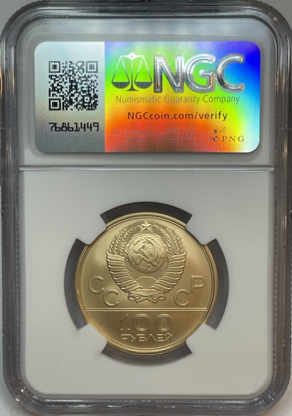 Сверху герб СССР с 15 витками ленты, слева от него буквы «СС», справа «СР», ниже двойная черта, под ней обозначение достоинства монеты цифра «100» и ниже слово «РУБЛЕЙ».