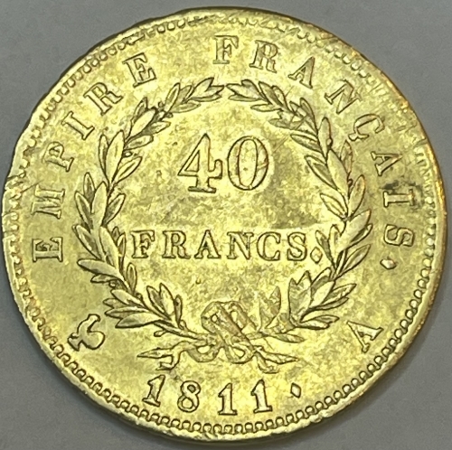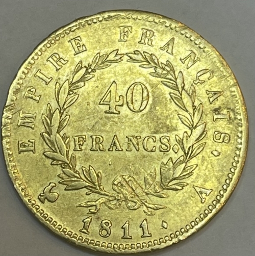 Вы всегда можете купить или продать, а также узнать текущую стоимость монеты - 'Золотая монета 40 франков 1811г Наполеон I' в г.Москва (Москва). У нас Вы получите полную и необходимую консультация от квалифицированных специалистов и профессионалов, работающих на рынке инвестиций в драгметаллы уже долгое время. Мы стараемся предложить нашим клиентам лучшие цены выкупа и продажи на рынке (с минимальным спредом), а также гарантируем конфиденциальность всех проводимых сделок.