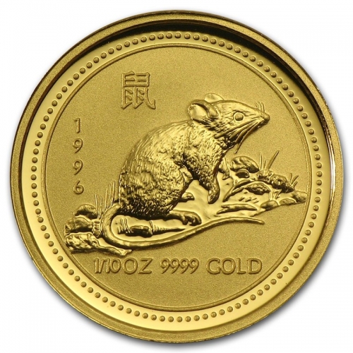 Золотая монета Австралии 15 долларов "Лунный календарь I- "Год крысы" 1996 год 1/10 унции, 3,11г.