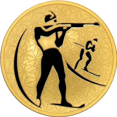 Золотая монета "Биатлон", 200 рублей, 2009 год