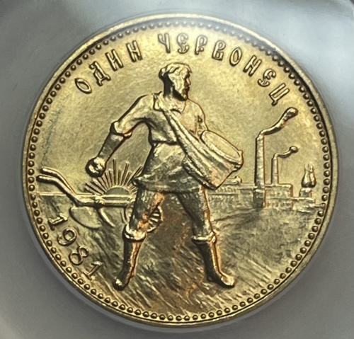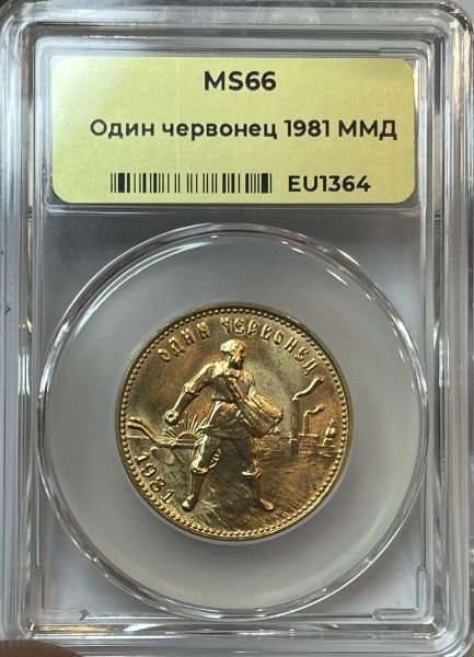 Золотая монета Червонец Сеятель 1981г. ММД в слабе ННР MS 66
