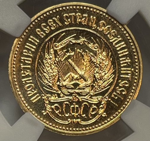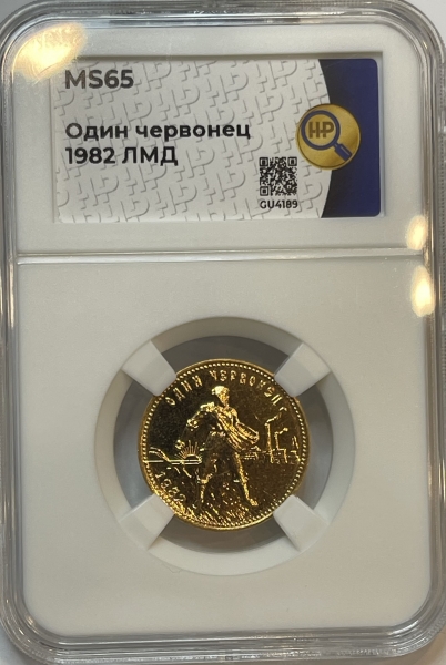 Золотая монета Червонец Сеятель 1982г. ЛМД в слабе ННР MS 65