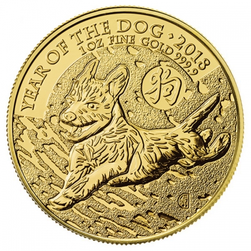 Золотая монета Великобритании 100 фунтов "Год Собаки" 2018 год 1 OZ, 31,1г.