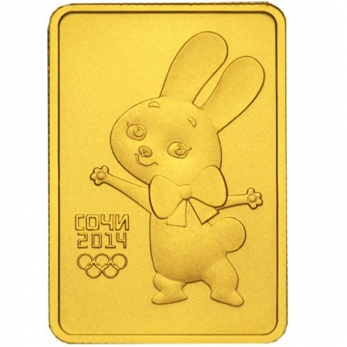 Реверс: рельефное изображение Белого Мишки - официального талисмана XXII Олимпийских зимних игр 2014 года в г. Сочи, слева от него в две строки - надпись: "СОЧИ" и дата: "2014", под ними - пять Олимпийских колец.